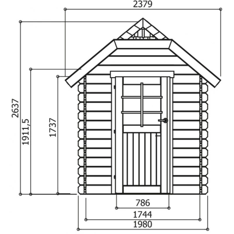 Les extrémités du faîtage sont tronquées pour un style Cottage, qui se caractérise par une pente de la toiture avoisinant les 40° et participe au caractère charmant de ce petit chalet. Cet abri de jardin possède un seuil rabaissé en aluminium, pour permettre un passage aisé, et une grille de ventilation assure une circulation optimale de l’air. La porte en bois est semi-vitrée, avec croisillons, le vitrage est en verre trempé (norme EN12150), et le système de fermeture est sécurisé pour éviter un enfermement accidentel (enfants), avec serrure à clé à l’extérieur et serrure à loquet à l’intérieur.