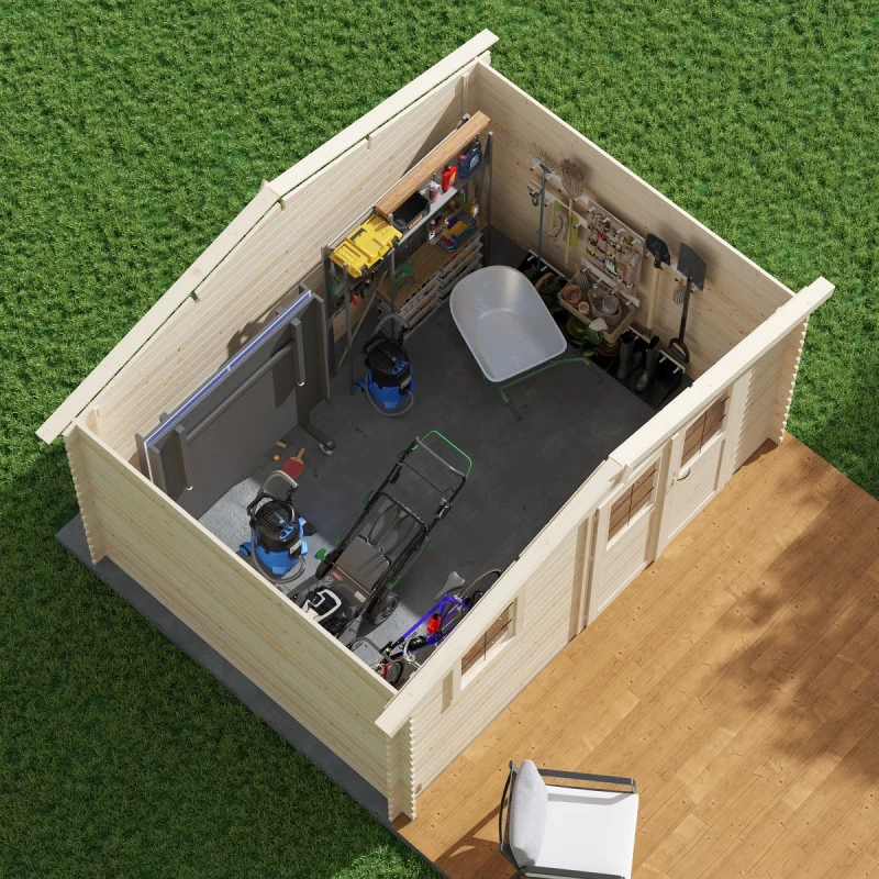 Conçu en madriers épais de 28mm qui sont emboîtables pour un assemblage solide et étanche, l’abri de jardin 11,9m² Onega bénéficie d’une grande robustesse. Il est fabriqué d’épicéa massif provenant des forêts gérées d’une manière responsable pour une conception écologique. Livré en état brut, le bois doit être lasuré afin d’obtenir une meilleure résistance aux intempéries. La peinture à la couleur est également une solution possible pour personnaliser votre abri de jardin en bois massif Forest Style.
