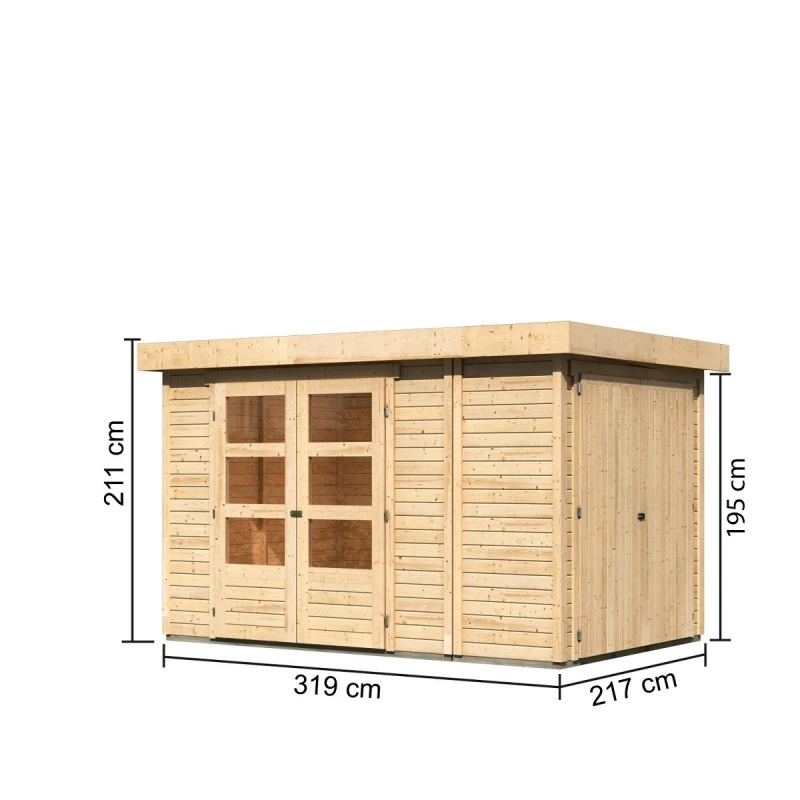 Fonctionnel et tendance avec sa conception 2 en 1, l’abri de jardin en bois 6,92m² Retola 3 Karibu vous offrira de nombreuses possibilités de rangement. Outre l’espace fermé de l’abri, vous disposerez d’une armoire intégrée dont l’accès par l’extérieur est facilité par une double porte ce qui vous permettra d’y stocker vos outils de jardinage sans encombrer la surface de l’abri. Une fois libérée, elle peut devenir votre lieu de travail ou de détente tout près de la maison.