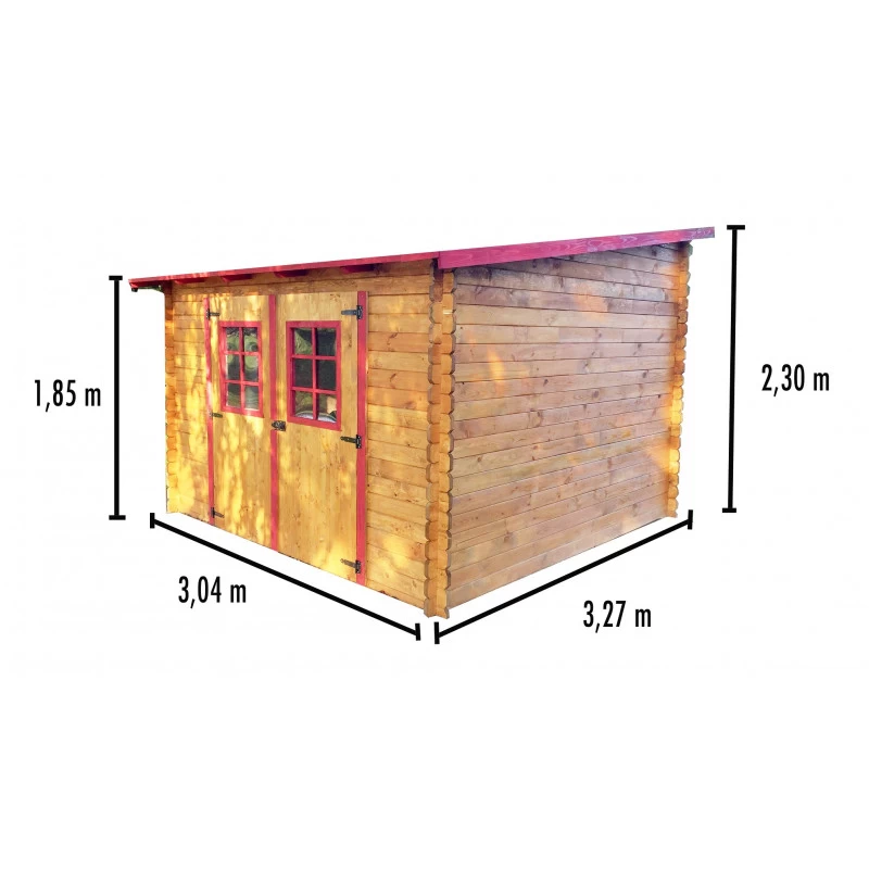 • Abri en bois de belle finition aspect brun-rosé, naturellement durable ne nécessitant pas de traitement chimique
