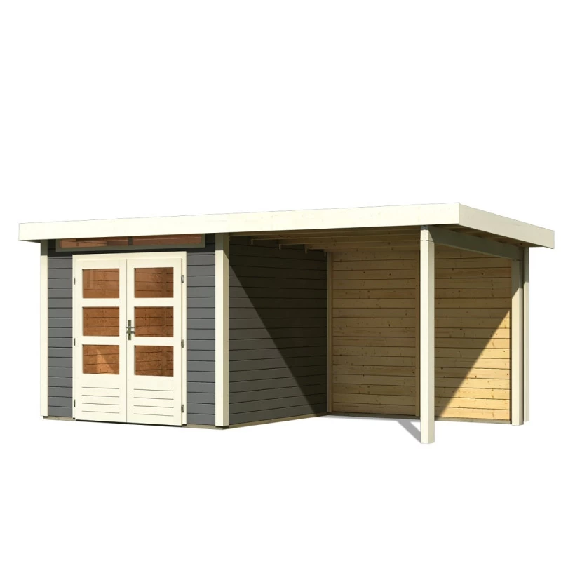 L’avis du spécialiste sur l’abri de jardin en bois massif gris terre 5,95m² Kandern 3 avec appentis 235cm et paroi arrière – Karibu :