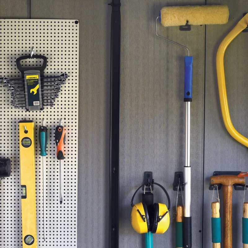 Les parois de l’abri, ultra résistantes et double épaisseur, peuvent être peintes facilement pour une personnalisation à l’extrême. Vous pourrez les percer pour y installer des étagères ou pour accrocher des portes-outils par exemple.