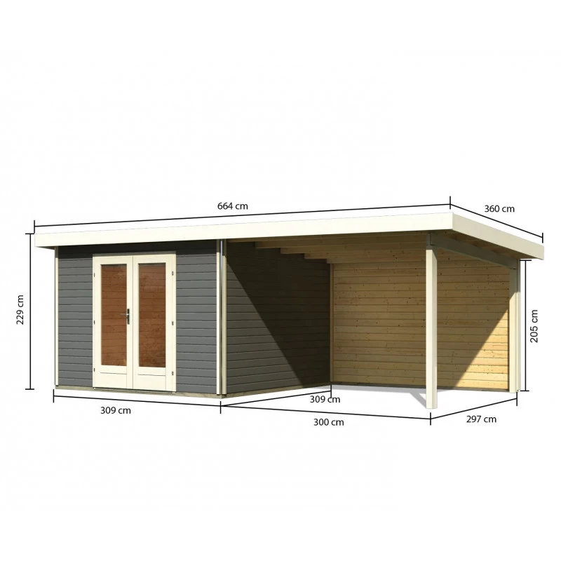 L’avis du spécialiste sur l’abri toit plat 9,55m² bois massif gris terre 40mm Radeburg 1 avec appentis 330cm et paroi arrière – Karibu :
