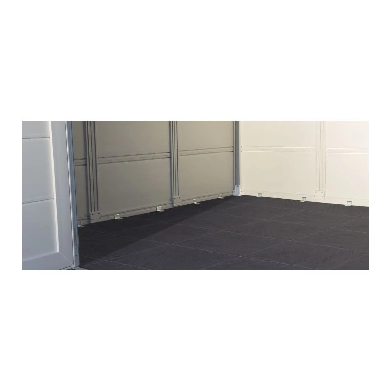 Composé de 90 dalles en polypropylène, ce kit vous permettra de positionner votre abri de jardin de 11m² Grosfillex sans installer un plancher ou une dalle en béton. Il suffit de mettre une toile géotextile entre deux lits de sable et de poser au-dessus vos dalles en polypropylène. Résistantes aux chocs et aux rayons UV, elles s’emboîtent facilement. La stabilité au sol est garantie !