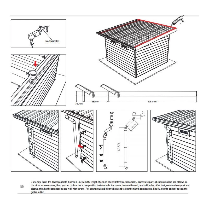Gouttière et descente de gouttière sous la pente à l’arrière de l’abri