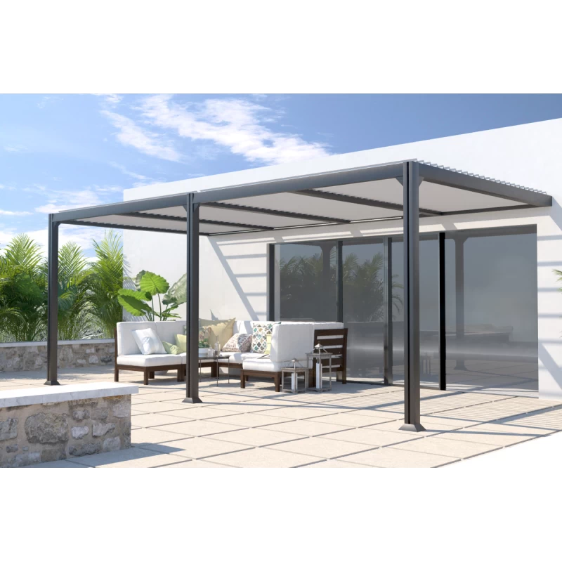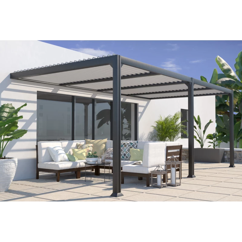 Pergola Adossée Bioclimatique 300x600cm Lames 13cm – Gris – SEATTLE – Couleurs Du Monde