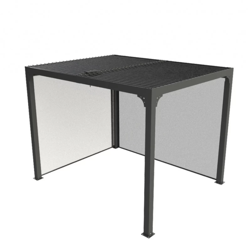 L’avis du spécialiste sur la pergola bioclimatique aluminium anthracite 7,20m² toit avec lames ovales aluminium + 2 rideaux gris pour les côtés – HABRITA :