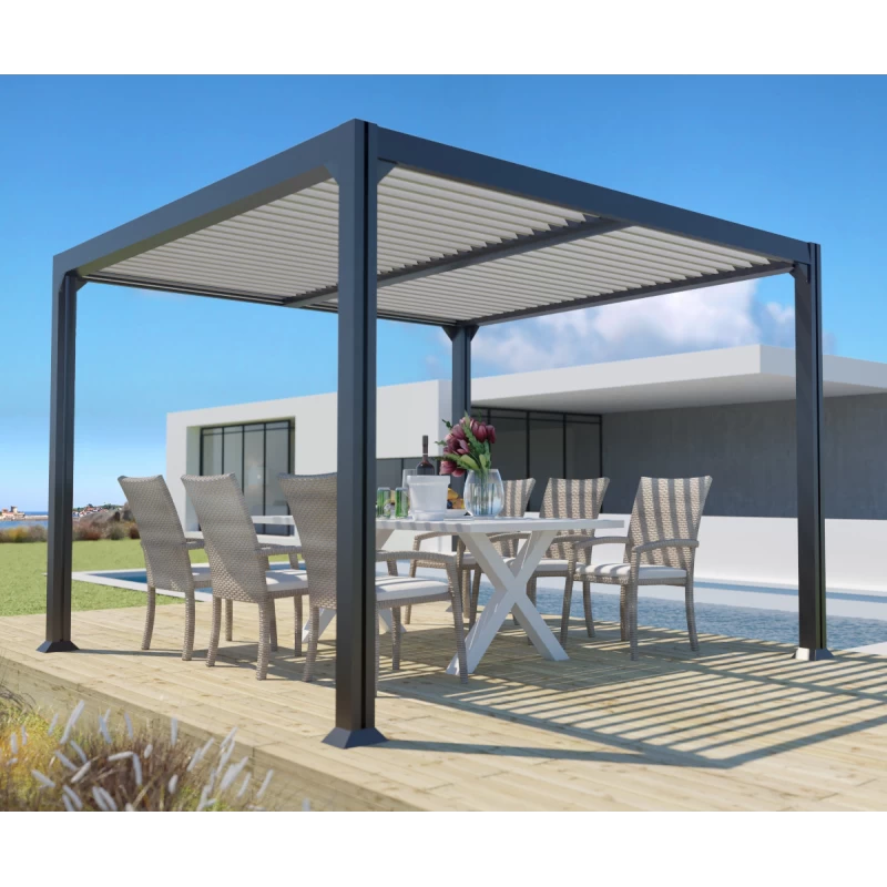 Lâavis du spĂ©cialiste sur la pergola bioclimatique autoportante 300x300cm lames 13cm – Gris – DENVER :