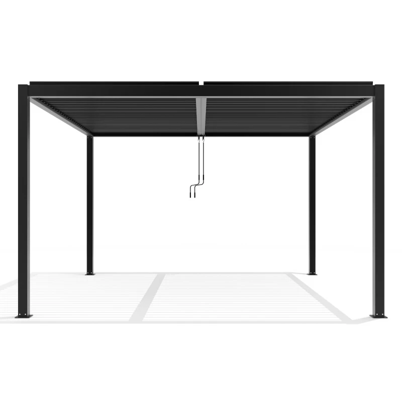 Les manivelles fournies sont simples d’utilisation. Sans difficulté, vous gérerez l’inclinaison des lames selon vos besoins. Ces manivelles, amovibles, sont positionnées de telle sorte que vous puissiez fixer des rideaux latéraux (en option) sur chacun des côtés, pour vous protéger encore plus efficacement du soleil ou du vent. Ces rideaux sont facilement rétractables pour ne pas avoir à les démonter quand vous ne les utilisez pas.
