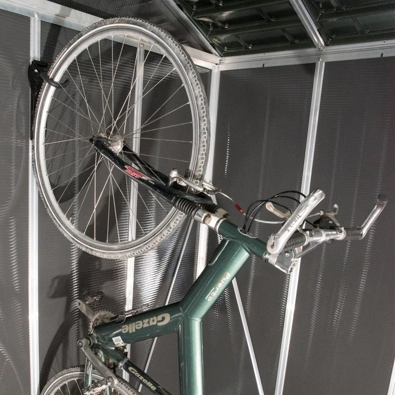 Facile à monter, le porte-vélo vertical peut supporter jusqu’à 25kg et il est adapté aux VTT à roues de 14ʺ à 29ʺ. Spécialement conçu pour les abris et garages Yukon, Skylight et Rubicon de Canopia by Palram.