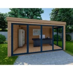 Bureau De Jardin En Bois Massif 11,8m² – Madriers 40mm Traités Teinté Marron Gardy Shelter